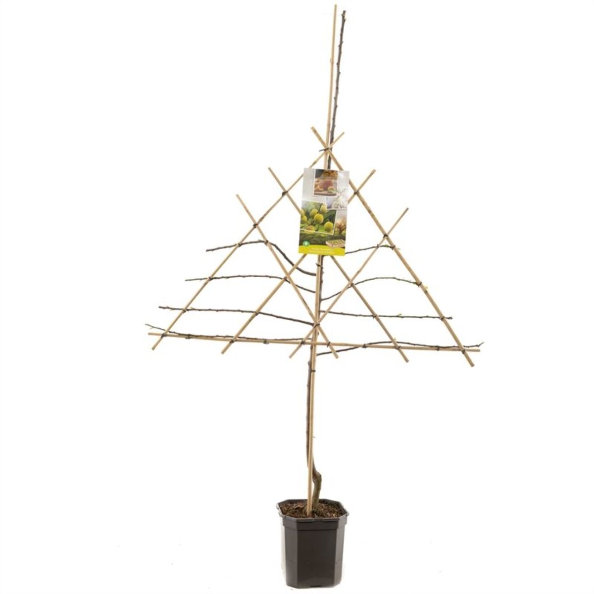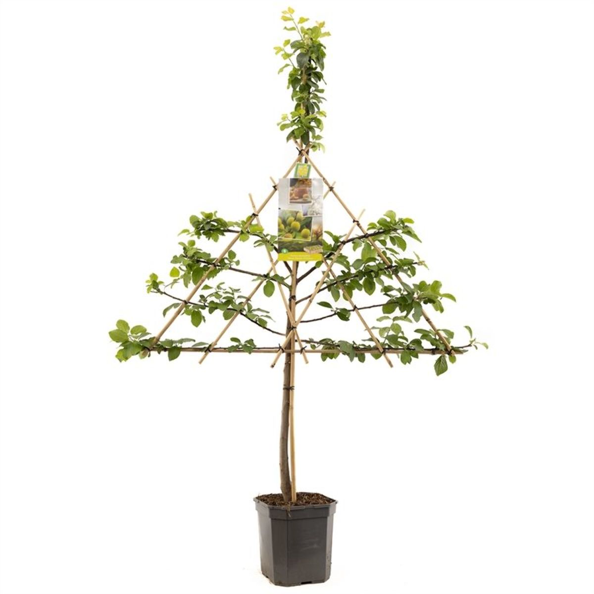 Maak bij het snoeien van de boom, gebruik van de techniek 'vormsnoeien'., Het doel van dit snoeiproces is het , vormen van een mooie, ronde, boomkroon met sterke gesteltakken., Bij een jonge boom zijn het de twijgen, die als toekomstige gesteltakken dienen., Snoei het jonge boompje zo, dat sterke, gesteltakken in een mooie vorm kunnen, groeien. Kies voor 4-6 gesteltakken en, snoei elke verlenging van de , gesteltakken jaarlijks voor de helft in., Zorg dat er voldoende ruimte blijft, tussen de gesteltakken en groeiende, zijtakken zodat er voldoende zonlicht, en ruimte in de kroon komt